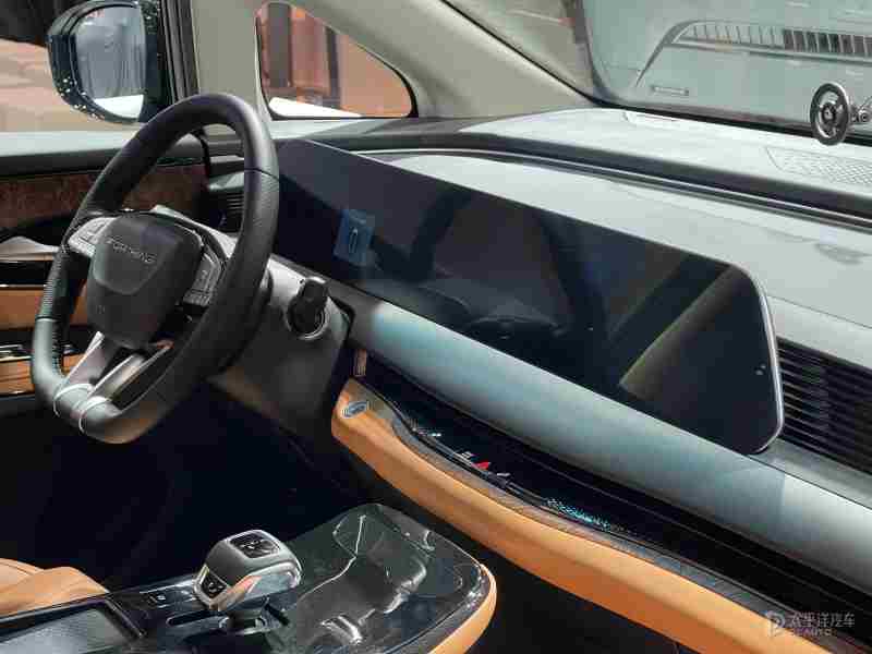 内饰方面,风行星海V9的设计同样较为前卫,配备由12.3英寸全液晶仪表、16.2英寸中控屏和12.3副驾娱乐片组成的一体式大联屏,搭载腾讯TAI 4.0智能车机系统,内置有高通骁龙8155芯片,支持4G网络、四区域语音识别唤醒、WI-FI热点、手机APP远程控制以及OTA升级等功能。另外,新车采用隐藏式空调出风口设计,配备三辐平底式多功能方向盘和电子换挡机构。