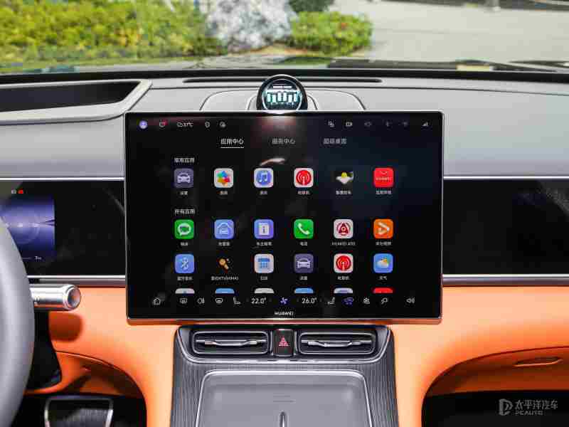 新车前排拥有三屏联动,首先中控采⽤16.1英⼨3K视⽹膜⼤屏,⾼达 90.5%极致屏占⽐。适应亮度调节,效果细腻且⾊彩精准。其次副驾新增10.25英⼨副驾屏,采⽤专属 UX 设计,副驾娱乐更⽅便。