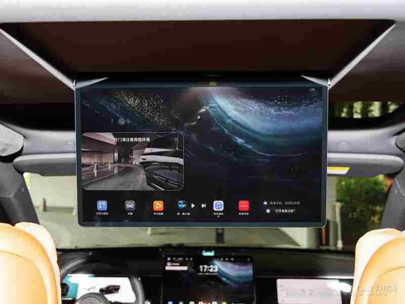 其次全新问界M7首搭后排娱乐屏,屏幕尺⼨17.3英⼨,拥有2880×1620超⾼分辨率,后排娱乐⽀持触控、语⾳、遥控器等多种控制⽅式。