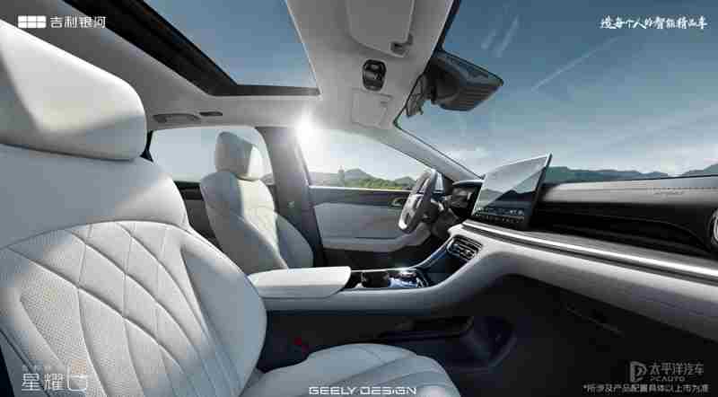 动力方面,吉利银河星耀6将搭载全新一代雷神AI电混2.0技术,搭载1.5L发动机,最大功率82kW,配备17kWh大容量电池包,纯电续航里程可达125公里。
