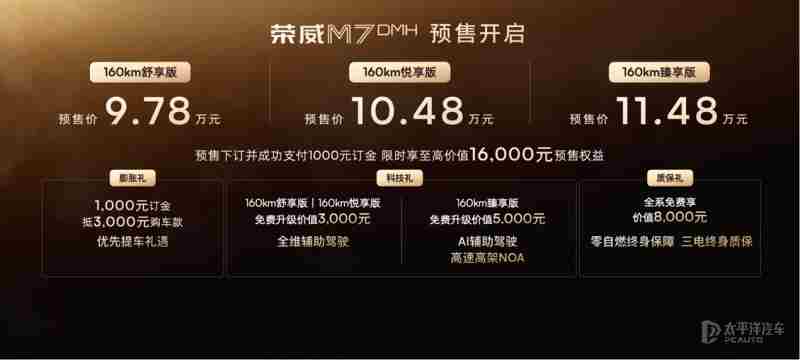 荣威M7 DMH已于成都车展开启预售,预售价9.78万元起,一周内订单已破万。这款长续航中大型豪华轿车将于9月17日正式上市,届时更多购车权益与配置细节全面公布。