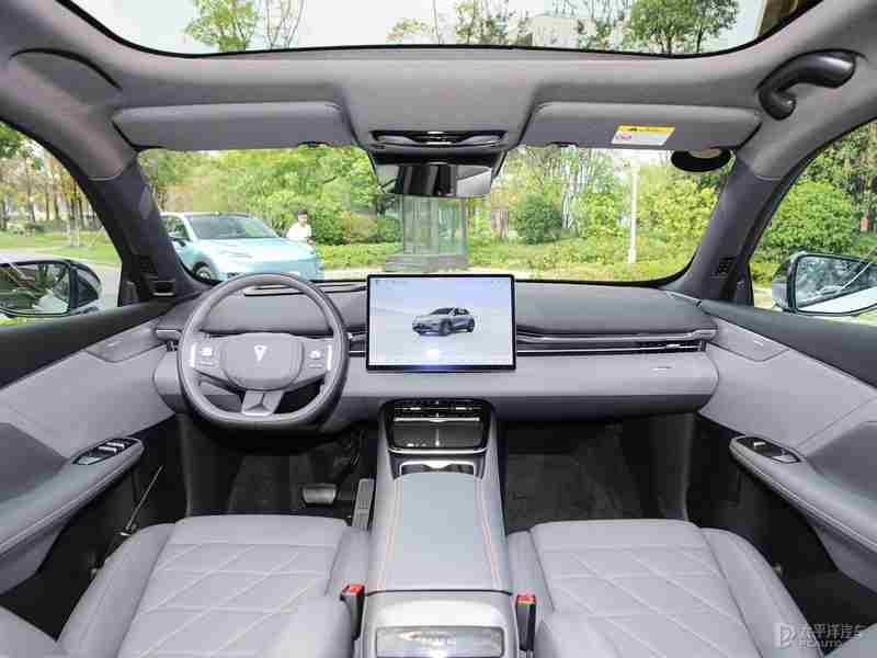 内饰内饰,深蓝S05布局设计非常极简,没有配备液晶仪表盘,方向盘采用三辐平底式设计,以及采用怀挡式换挡。另外,整个中控台区域均没有配备物理实体按键,车内功能基本集中在中控大屏上,屏幕为15.4英寸2.5K“向日葵屏”,支持左右各最大15度的旋转功能,搭载DEEPAL OS 3.0车机系统,内置有高通骁龙8155座舱芯片,支持泡泡玛特联名语音助手、情景模式、AI语音交互、车外语音交互、自定义3D实况桌面等,还配备AR-HUD抬头显示系统。