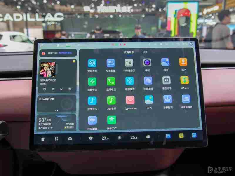 在智能座舱方面,长安启源E07搭载Tops OS智能车机系统,内置有高通骁龙8155芯片,支持4G网络、四区域语音识别唤醒、面部识别、手势控制、应用商店、车载KTV、手机APP远程控制、HUAWEI HiCar手机互联等功能。