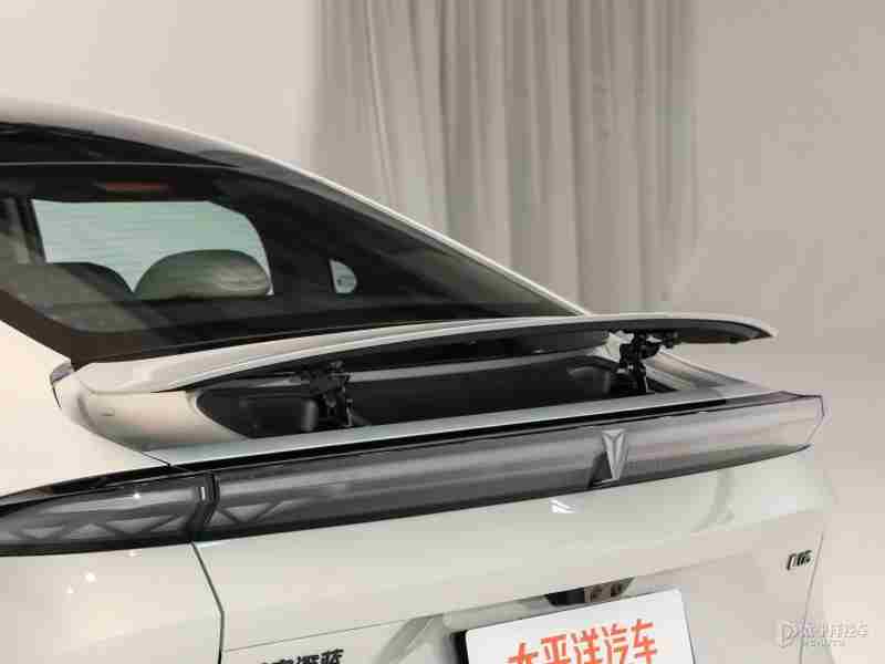 车尾部门,新车采用双层贯穿式尾灯设计,并配备电动升级尾翼,且是随速无极可调,还能提供最高13公斤下压力,提升车辆抓地力。