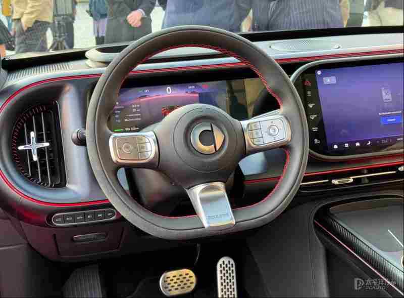进入车内,我们可以看到精灵#5 BRABUS超能版在沿用普通版内饰布局的基础上,对材质及细节进行了非常明显的升级。