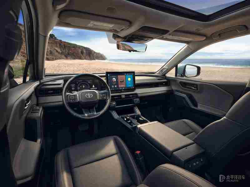 来到车内,新车首次应用Arene软件架构,中控台由12.9英寸屏幕和12.3英寸液晶仪表组成,中控屏内置丰田最新的Arene多媒体系统,加入了底盘影像并支持CarPlay以及Android Auto手机互联。