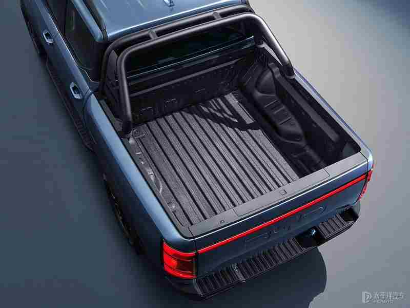亮点方面,SHARK配备云辇P智能液压车身控制系统,可根据路况自动调节悬架高度,应对陡坡、泥地等复杂地形。其货箱容积达1450L,最大载重835kg,牵引能力达2.5吨,满足户外探险与商用运输需求。此外,车辆支持220V对外放电功能,可直接驱动露营设备或电动工具,进一步拓展使用场景。