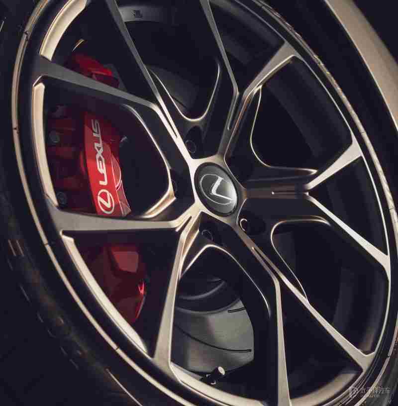 车身侧面,新车前轮配备Brembo对向六活塞铝合金卡钳与直径380mm的柱状鳍片通风盘,这一规格与雷克萨斯旗舰跑车RC F一致,搭配BBS代工的19英寸哑光黑锻造轮毂,运动性能拉满。