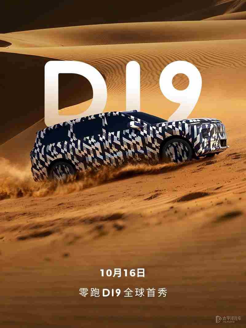 【太平洋汽车 新车频道】9月19日,零跑汽车官方宣布,品牌旗下首款全尺寸旗舰SUV D19将于10月16日正式亮相。这款车定位于全尺寸SUV,将于2026年一季度量产。