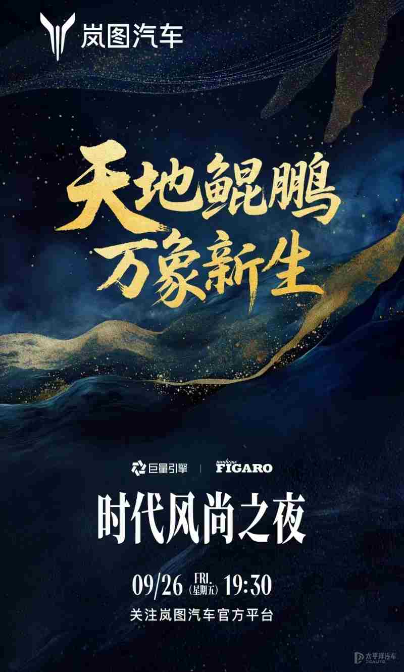 【太平洋汽车 新车频道】在9月22日岚图直播中,岚图汽车李博晓透露,岚图时代风尚之夜定档9月26日举行,届时岚图会带来三旗舰产品阵容,其中包括一款全新大六座的新时代旗舰SUV首发亮相。