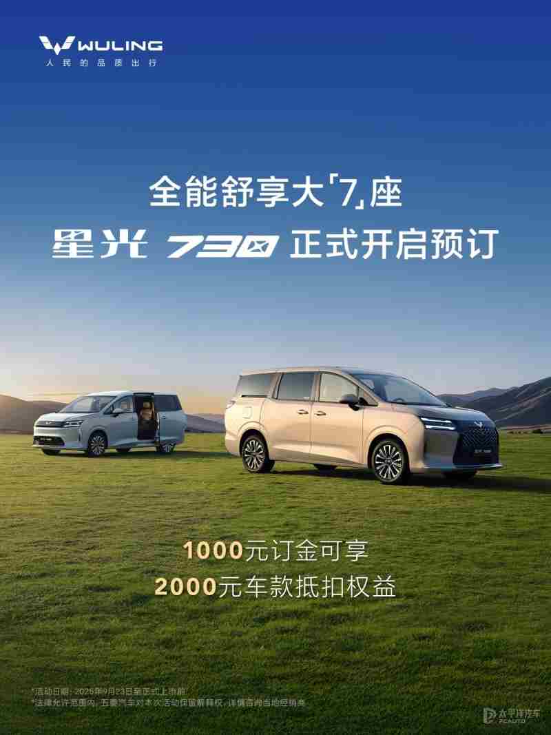 【太平洋汽车 新车频道】9月23日,我们从五菱银标官方获悉,五菱星光730正式开启预订,1000元订金可享2000元车款抵扣权益。星光730基于五菱全新新能源架构开发,定位“全能舒享大7座”,将提供燃油、插电混动以及纯电三种动力模式给消费者选择。