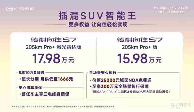 【太平洋汽车 新车频道】9月26日,传祺向往S7(询底价|查参配) PRO+正式上市,共推出2款车型,包括205km Pro+版和205km Pro+激光雷达版两个款型,售价分别为15.98万元和17.98万元。新车在车系内定位介于入门Pro版和中配Max版之间,可视为新增次低配车型。