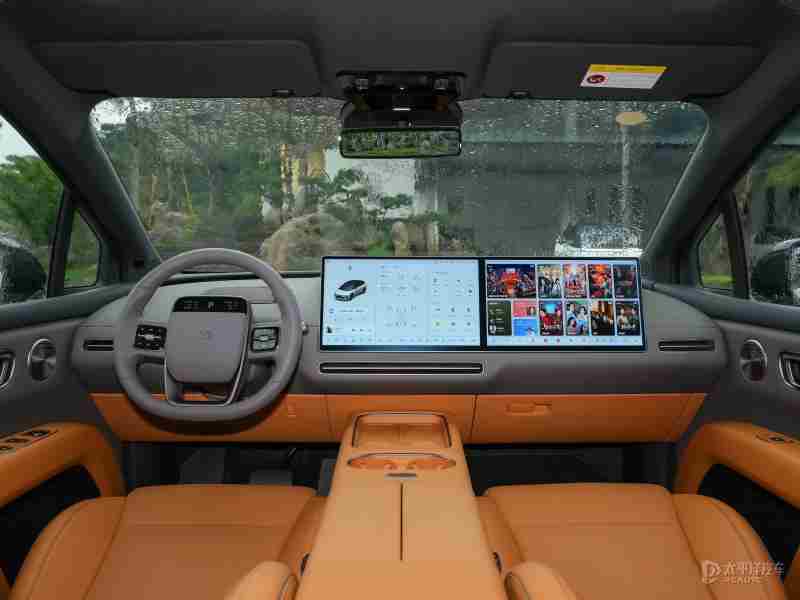 设计层面,新车继续采用15.7英寸中控屏和15.7英寸副驾娱乐屏组合的双联屏布局,搭配16.3英寸HUD抬头显示系统,配备三辐式多功能方向盘,上面配有4.82英寸液晶仪表,能够显示行车信息、续航信息、时间日期、温度等,应用电子怀挡式换挡。内饰颜色上,提供白色、橙黄色和灰棕色共3款配色可选。