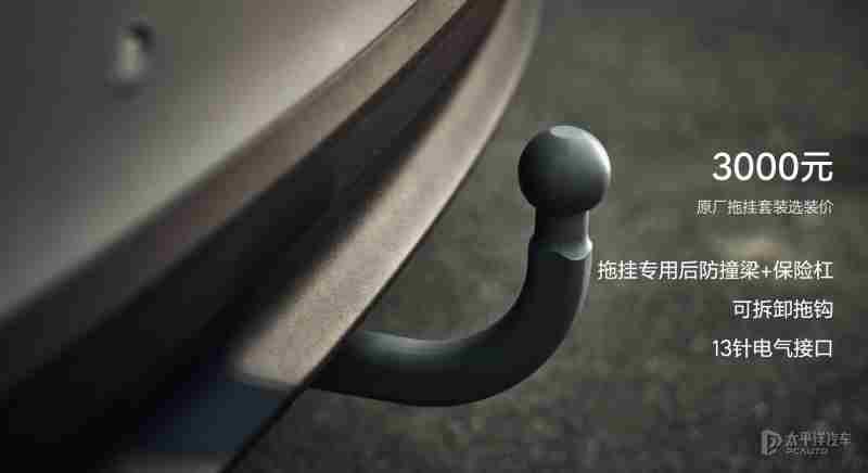车尾造型与理想i8如出一辙,采用贯穿式尾灯设计,并进行黑化处理,并配备熏黑扰流板,整体造型相比于前脸和侧面更符合主流审美。此外,新车还可选装拖车钩,价格为3000元。