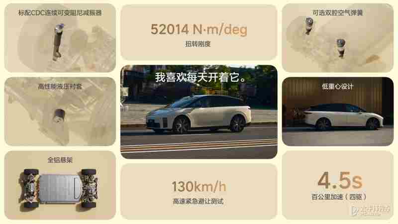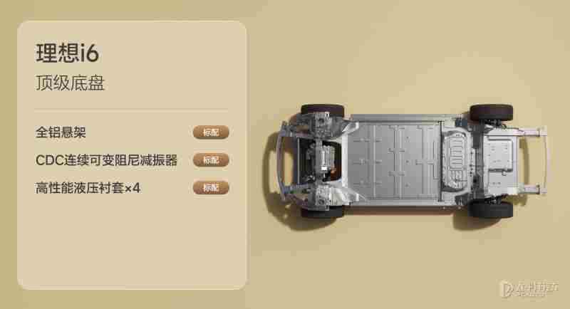 底盘方面,理想i6采用前双叉臂式后五连杆式独立悬架的形式,并配备双腔空气悬架和CDC可变阻尼减振器,前者可提供2种刚度和4种高度模式可以选择。