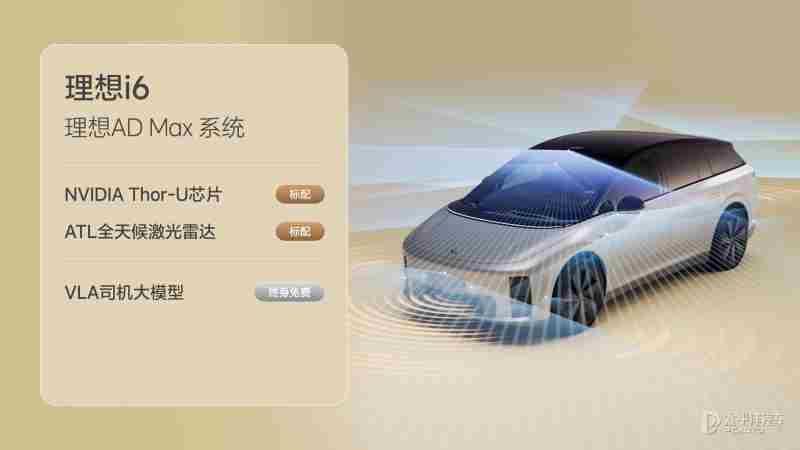 辅助驾驶方面,理想i6搭载VLA司机大模型方案,配备一颗英伟Thor-U芯片,算力700TOPS,并配备1颗激光雷达、12个摄像头、12个超声波雷达、1个毫米波雷达共26个智能传感器,支持高速/城市领航辅助驾驶、智能泊车、AEB自动紧急制动、AES自动紧急转向等功能。