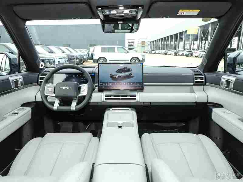 内饰方面,方程豹钛7延续家族式布局设计,采用15.6英寸悬浮式中控屏和12.3英寸全液晶仪表组合,搭配27英寸W-HUD抬头显示,配备四辐式多功能方向盘,并且换装怀挡式换挡。座舱方面,搭载智能座舱高阶版-DiLink 150,已接入DeepSeek大模型,支持5G网络、四区域语音识别、应用商店、面部识别、多指飞屏操控、手机APP远程控制、HUAWEI HiCar/CarLink手机互联等功能。
