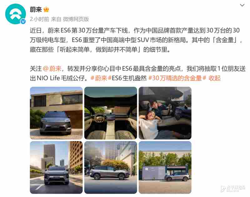 » 蔚来ES6达成里程碑时刻 累计量产30万台