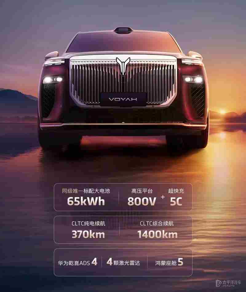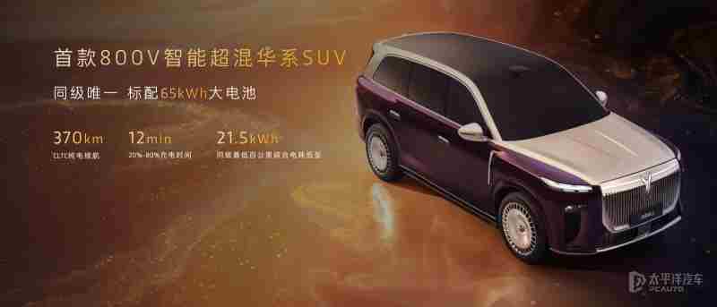 动力方面,岚图泰山搭载1.5T插电式混动系统,其中1.5T发动机最大功率110千瓦,前后驱动电机最大功率分别为150千瓦和230千瓦,最高车速200km/h,容量为65千瓦时5C三元锂电池,CLTC纯电续航里程370km,CLTC综合续航1400km,SOC 20%-80%仅需12分钟。