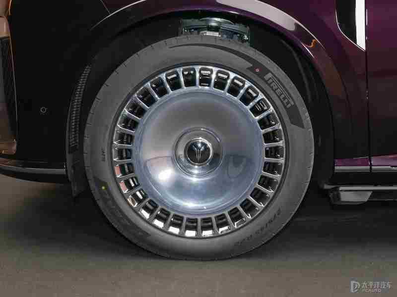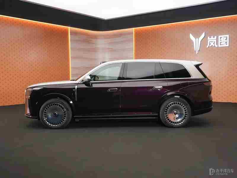 车身侧面线条平直,并采用双拼色设计,进一步提升高级感,同时新车采用半隐藏式门把手设计,门把手内部运用了星河的元素。此外,岚图泰山还配备“大饼式”轮毂,尺寸提供21英寸和22英寸两种,对应轮胎规格分别为255/50 R21和275/45 R22。