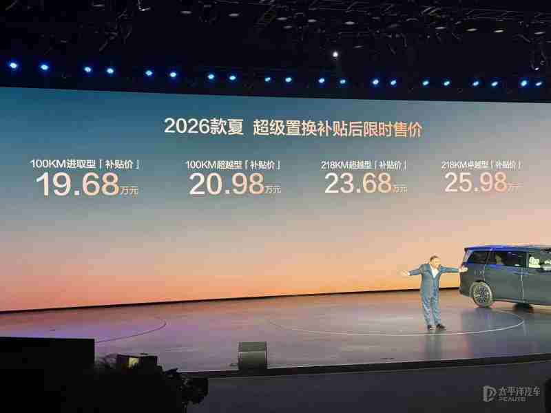 【太平洋汽车 新车频道】11月4日,2026款比亚迪夏(询底价|查参配)正式上市,新车共推出4款车型,售价区间为20.68-26.98万元,限时置换补贴价为19.68-25.68万元。作为改款车型,新车CLTC纯电续航提升至218km,亏电油耗4.9L/100km,综合续航超1163km。同时,新车还将搭载天神之眼B辅助驾驶,配备带预瞄系统的云辇C、智能底盘-TBC高速爆胎稳行系统等配置。