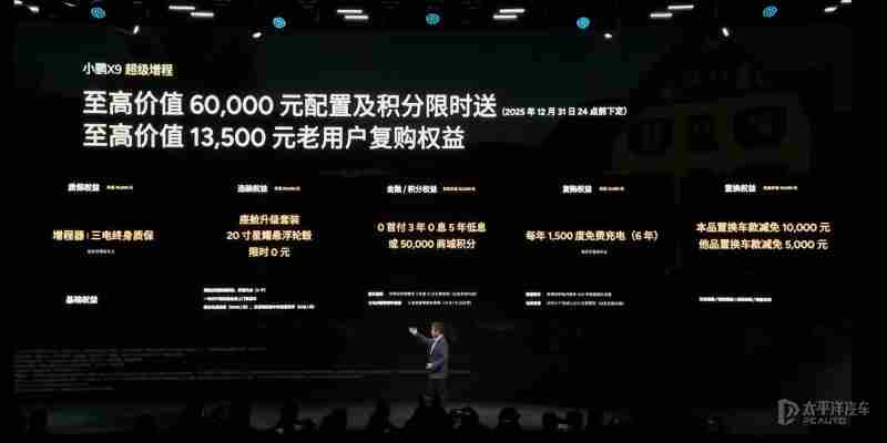 【太平洋汽车 新车频道】11月20日晚,小鹏X9(询底价|查参配)增程版正式上市,新车共推出2款车型,官方指导价为30.98-32.98万元。新车定位中大型MPV,基于800V高压平台打造,搭载1.5T增程混动系统,发动机最大功率110kW,电动机最大功率210kW,匹配63.3千瓦时5C电池组,CLTC纯电续航452km,综合续航超1600km,并标配双腔空悬+CDC、后轮转向系统等,此外,新车还配备3颗图灵AI芯⽚,算力2250TOPS。