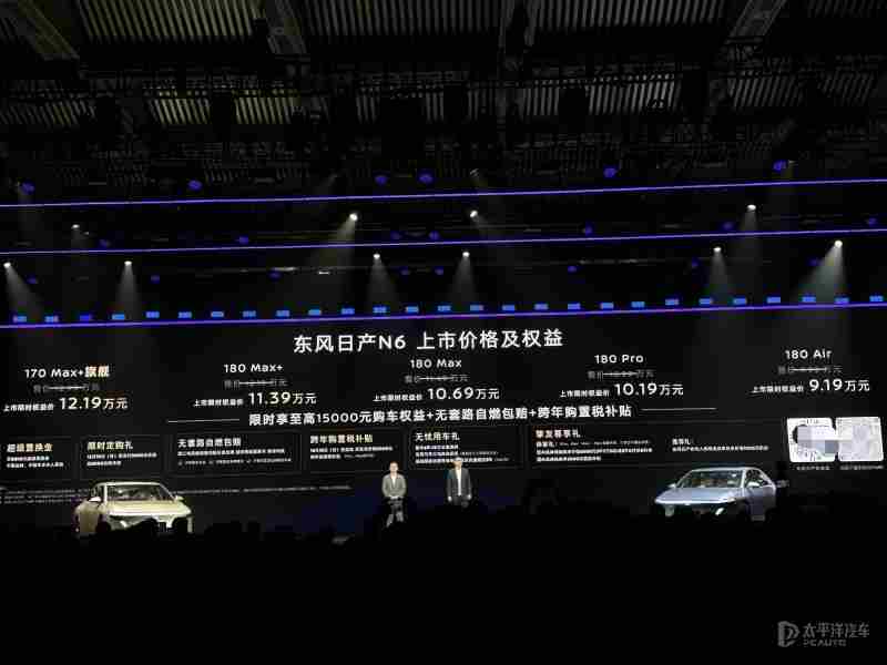 【太平洋汽车 新车频道】12月1日,东风日产N6正式上市,新车共推出5款车型,售价区间为9.99-12.99万元,限时权益价9.19-12.19万元。日产N6(询底价|查参配)定位中型轿车,外观延续了日产N7设计语言,搭载1.5升插电式混动系统,百公里加速6.8秒,CLTC纯电续航180公里,CLTC亏电油耗2.79L/100km,并配备高通骁龙8775芯片和Momenta方案智能辅助驾驶系统。