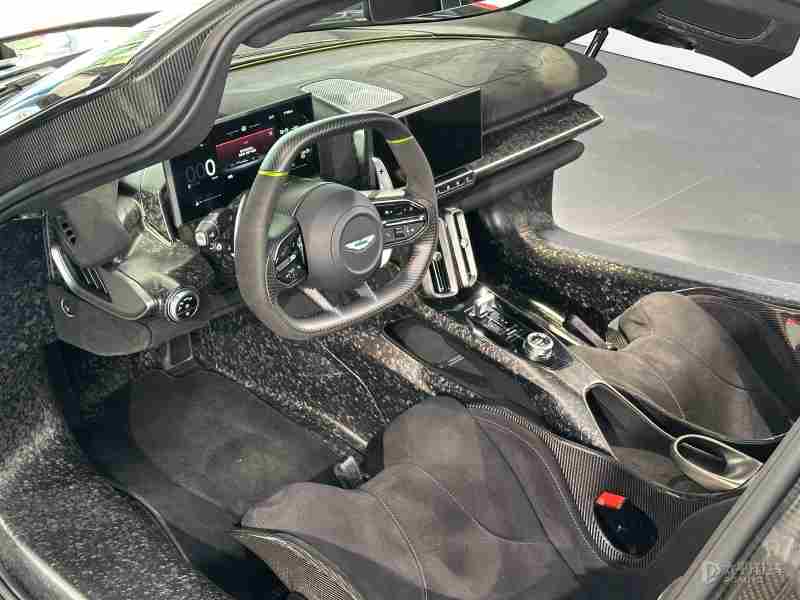 内饰方面,Valhalla量产版设计延续了阿斯顿·马丁终极跑车Valkyrie中融入的F1®赛车设计元素,拥有类卧躺的赛车驾驶坐姿,并配备轻量化一体式碳纤维座椅,方向盘的造型也汲取了F1®赛车的精髓,并采用一体式碳纤维电枢。同时,新车还采用直立式液晶仪表盘和中控屏幕,在赛道模式下,该车屏幕可显示线性转速表和换挡指示灯;在公路驾驶模式下,可全屏显示导航地图等。